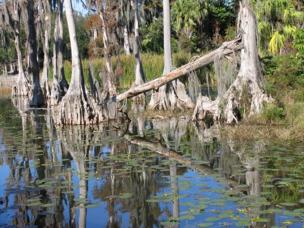 La vegetación incluye el sur de encinas ( Quercus virginiana ), magnolias , nogales ( Carya spp.), palmito col ( Sabal palmetto ), y Saw palmito ( Serenoa repens.).