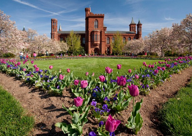 Más de 2 millones de visitantes pasan a través del Castillo de la institución Smithsonian en el National Mall. El castillo Smithsonian es el centro de orientación para el Smithsonian. El edificio del castillo está rodeado por dos jardines de exposiciones, el Enid A. Haupt Garden y Folger Rose Garden. Estos jardines escaparate de contenedores de plantas, muebles de jardín del siglo XIX, las plantaciones de temporada y fuentes.
