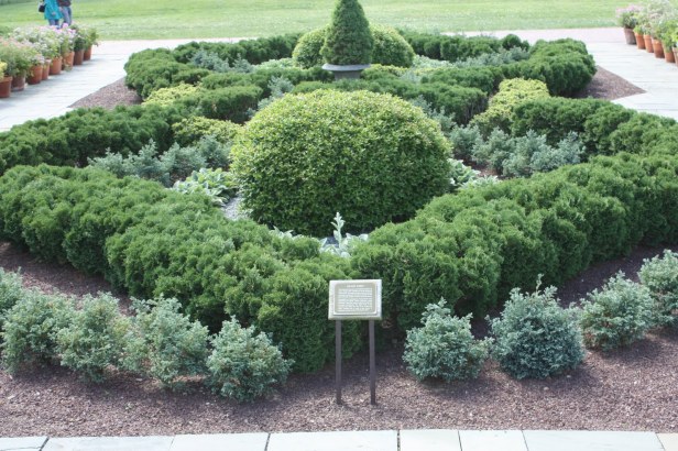 Siguiendo la tradición de parterres en jardines, el parterre Hillwood es un jardín de bajo plantaciones detallado que se dividen con senderos y muros de hiedra.