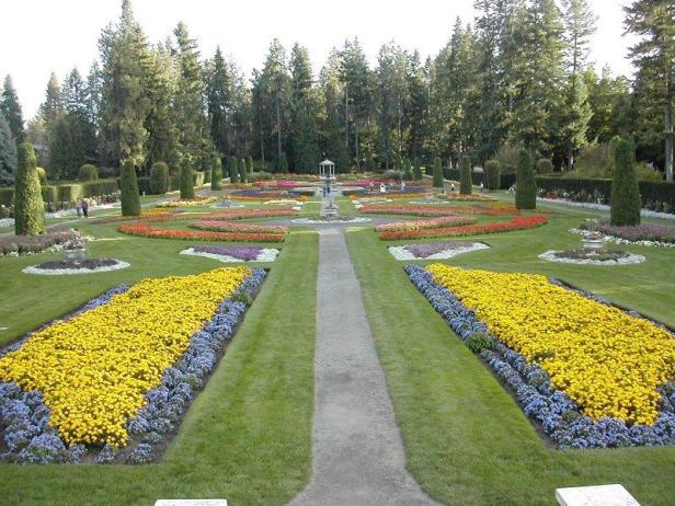 El más dramático de los jardines en el parque de Manito es Duncan Jardín, creado en un estilo clásico renacentista europeo.