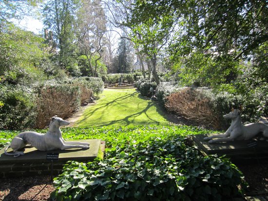 Pet Cemetery .-Después de vivir con numerosos perros a lo largo de su vida eligió para honrar su memoria sobre la base de Hillwood. violetas diente de perro , Sweetbox y cubierta vegetal rodean los monumentos de piedra caliza de caniches , perros de caza y perros de agua .