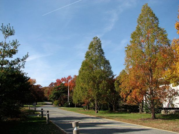 Nueve kilómetros de carreteras serpentean por y conectan los numerosos jardines y colecciones en el campus.