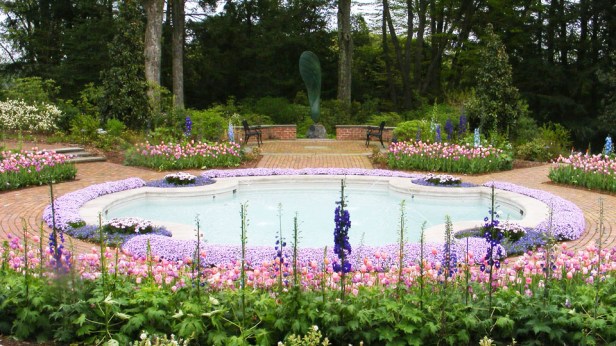 The Reflecting Pool (12 m) de diámetro,, apoyados por los cedros japoneses cedros , rosa floración castaño de indias y robles pin