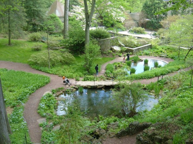 Los jardines naturalistas se han desarrollado en 1965-1971 en el diseño de Seth Kelsey, un arquitecto paisajista de la Universidad de Harvard formado por Massachusetts, que cuenta con árboles nativos, arbustos y flores silvestres.