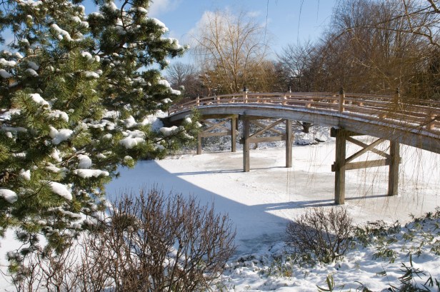 Elizabeth Hubert Malott Jardín Japonés – También llamado Sansho-En (el Jardín de las Tres Islas). Está diseñado en estilo japonés con más de 280 tipos de plantas conducentes a la jardinería en el Medio Oeste. Es un jardín de cuatro estaciones con caminos curvos y los árboles podados, enmarcando vistas lejanas de los lagos, verdes colinas, bosques y jardines más allá. Las tres islas son Keiunto, Seifuto y Horaijima.