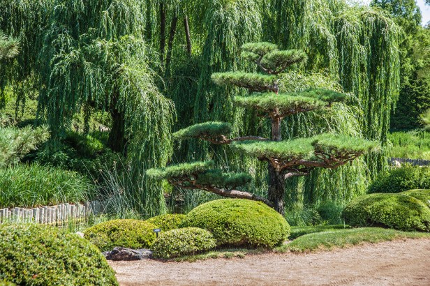 Las plantaciones son arces japoneses, pinos, azaleas, magnolias y rododendros.