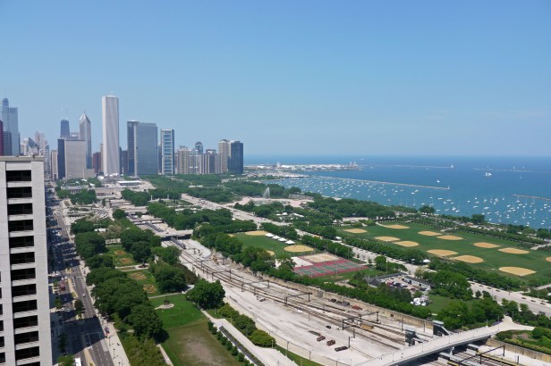 Cuando el ex Dearborn Fort Reserva se convirtió en parte del poblado en 1839, el plan de la zona este de la Avenida Michigan al sur de Randolph fue marcado «terreno público. Para siempre permanezca vacante de edificios.»