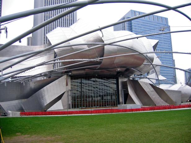 La pieza central del Parque del Milenio es el Jay Pritzker Pavilion, una concha acústica diseñada por Frank Gehry.