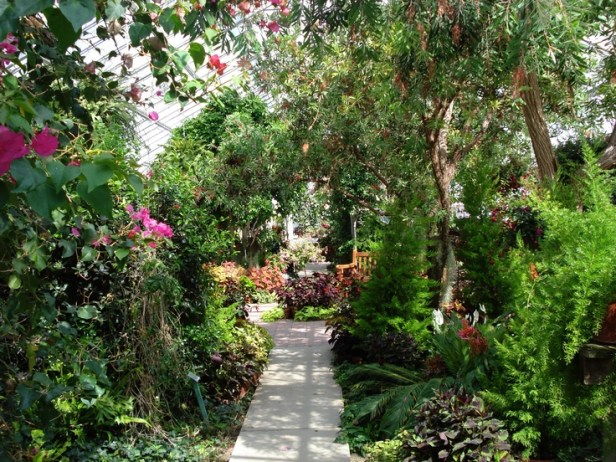 Invernadero, «The Meyers-Deats Conservatory» que alberga colecciones de bromelias, orquídeas, y cactus y plantas tropicales ornamentales de interiores.