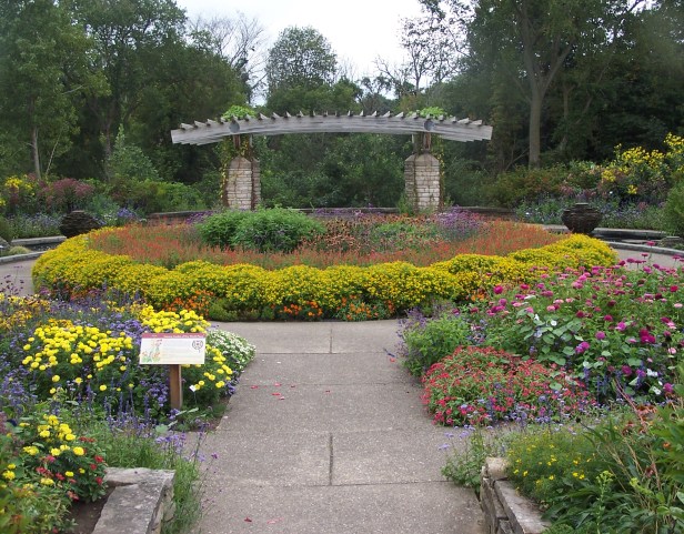 Jardín de exposición.- Esta área demuestra cómo las plantas se pueden combinar en grupos atractivos. Las anuales, perennes, gramíneas ornamentales, coníferas, árboles con flores y arbustos se muestran aquí. La nueva planta de floración anual galardonada cada año de All-America Selections también se encuentra cultivada en esta área. El verano y principios de otoño ofrecen una gran abundancia de flores, pero no importa qué época del año, este jardín ofrece algo de interés en cada una de las estaciones.