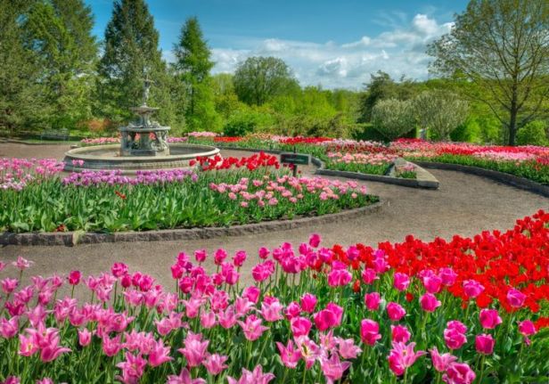 STREAM WALK .-Esta zona es un gran ejemplo de la filosofía de Herbert Dow nunca revelar todo el jardín a la vez. En los meses de primavera, adoquines históricos están enmarcados por una gran cantidad de tulipanes mientras que los puertos de verano más de 20.000 variedades anuales.