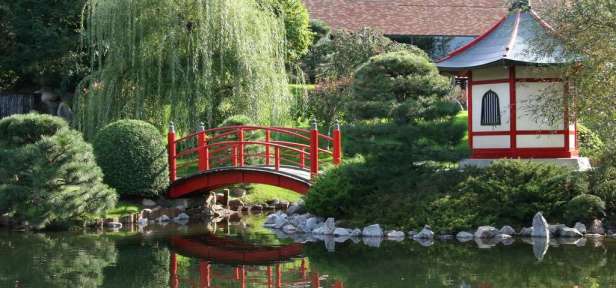 Mucho fue donado al jardín (arena, relleno, plantas, estructuras) que fueron los servicios de diseño de Takao Watanabe, que fue el arquitecto de paisaje para el Gobierno Metropolitano de Tokio. El jardín es sobre-fluyendo con elementos del jardín japonés; una puerta de entrada, múltiples puentes, linternas de piedra, refugios, islas simbólicos, rocas, arroyos y cascadas. Los materiales vegetales, aunque en su mayoría no los utilizados en Japón debido a las diferencias climáticas, reflejan el uso reservado de plantas con flores que es tradicional en Japón. Las variaciones en tonos y texturas de predominante verde y materiales de plantas leñosas se recortan o podados para objetivos estéticos específicos. Caminos están cubiertos de alquitrán.