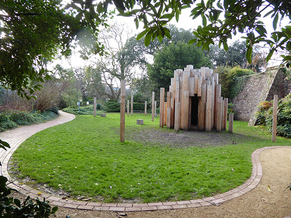 La estructura de madera pesada fue erigida en 2003. El diseño para encerrar la estructura de madera incluido el uso de materiales y conceptos para ayudar a conectar el edificio con su entorno natural, tales como el uso de revestimientos de madera de roble, suelos de hormigón duraderos para manejar grandes grupos de personas en el área principal de reunión de interior, grandes ventanales orientado a los principales jardines y 4 Paneles apilables puertas ‘Nana’. Estas puertas están completamente abiertas para los visitantes, fluyen desde el área de acopio de interior a la terraza exterior y a los jardines durante los eventos especiales en el jardín.