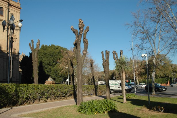 A veces, una poda excesiva es necesaria para minimizar riesgos, lo que puede convertirse en derribo total del árbol y el mejor juicio debe de prevalecer, para darle una muerte digna al árbol, sea este joven o decrépito.