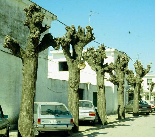 Igual podemos observar que algunos árboles plantados entre edificios cercanos y altos, crecerán muy altos y esbeltos buscando la luz arriba. Las podas para rebajar o reducir la copa son ocasionales cada tres a cinco años y los árboles mantendrán su apariencia normal.
