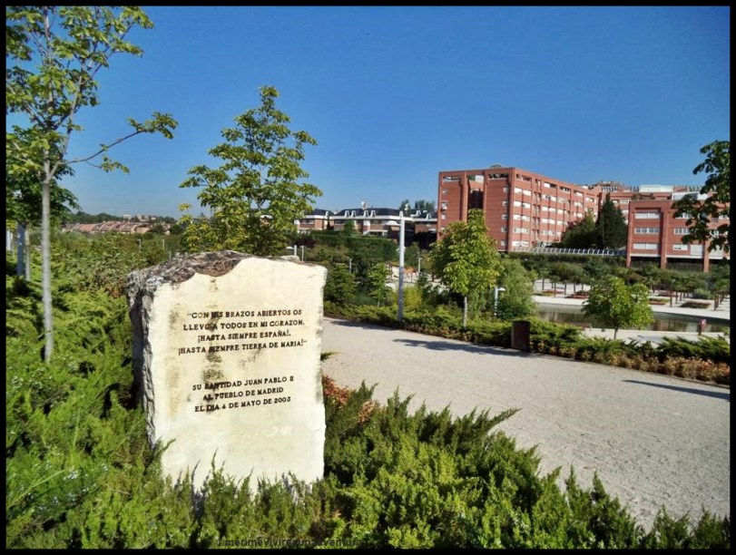 Existe un monolito conmemorativo en el que aparece inscrita la frase de Juan Pablo II: » Con mis brazos abiertos os llevo a todos en el corazón», dedicada al pueblo de Madrid con motivo de su visita en el año 2003.