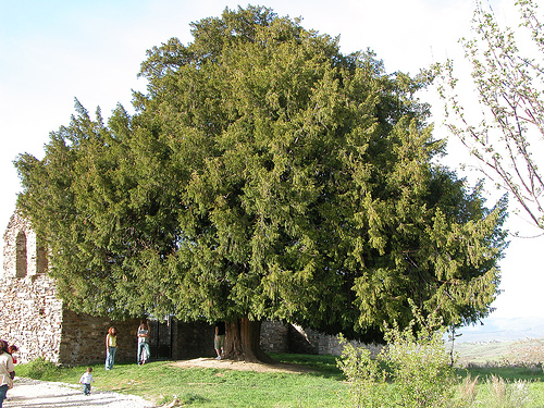 El tejo es muy longevo y, en muchos casos, el tejo en el cementerio es anterior a la iglesia, así que la iglesia fue construida alrededor de un tejo porque la creencia pagana sobre las raíces estaba tan profundamente arraigada.
