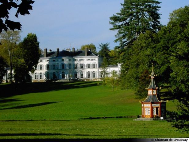El parque del castillo Groussay se inspira en los parques del siglo XVIII, jardines anglo-chino, sino también los castillos suecos. Rodea el Groussay castillo construido en 1825 por la duquesa de Charost, hija de la señora de Tourzel, institutriz de los hijos del rey Luis XVI y Marie Antoinette. Comprado en 1938 por Charles Beistegui, un personaje completamente original Groussay amplía en 1952 con dos alas, una de las cuales condujeron al teatro y «locura», diseñado con la complicidad de los artistas Emilio Terry y Alexandre Serebriakoff con arquitectos Desbrosses Costi .
