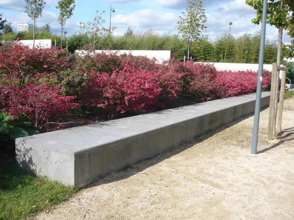 Una pantalla roja, al oeste de la pradera ya lo largo de la mayor parte de su longitud, diseñado por Carmen Perrin, limita la parte reservada de los servicios de gestión de parques y guardando esta pantalla, al igual que moucharabiehs, garantiza la transparencia entre el parque y la red ferroviaria;