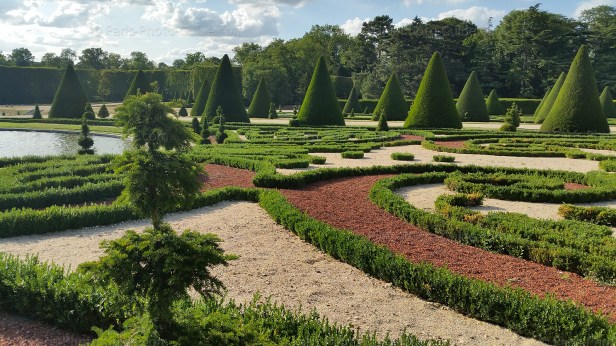 Pasamos por debajo de un porche que permite cruzar un seto, en una galería cubierta con cabezas de gato plátanos podados alrededor de un rectángulo. Esta es la ubicación, originalmente desde el jardín de la señora DE Chârost, mantenido por Charles Beistégui que no adoraban ya que las flores. Después de su muerte, su sobrino, Juan Beistegui desea, por desgracia, un parque de diversiones para reemplazar el huerto: el dibujo está dada por el paisajista australiano Ian Milles. La composición es esa habitación verde, cuyas paredes están talladas tejo recortado boj del topiary, rosas, lavanda y perennes: demasiado joven y demasiado aplastado luz; patrones interesantes para la pavimentación de ladrillo en el borde.