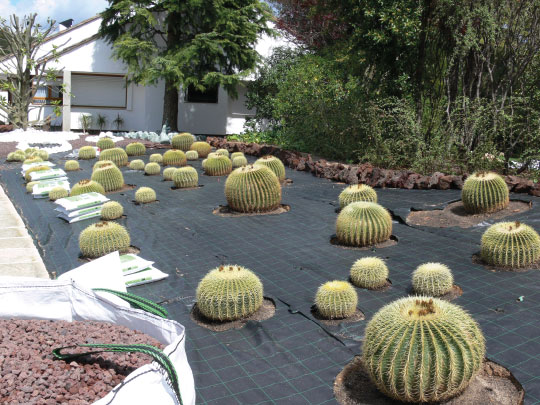 Materiales tejidos: Se trata de láminas de mallas de plástico tejidas para uso temporal o para el largo plazo en lechos, bordes y caminos.