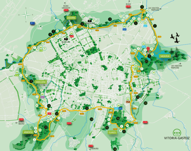 Curitiba, la capital del estado de Paraná, en Brasil, es la ciudad más verde de América latina con 52 m2 por persona. Vitoria-Gasteiz, en el País Vasco, recibió el premio Capital Verde Europea 2012 con 40 m2 por habitante. Vitoria tiene huertas gratuitas para los vecinos, que viven –sin excepción– a menos de 300 metros de una plaza. Nueva York, a pesar de sus enormes rascacielos y avenidas, tiene 23,1 m2 por habitante. Santiago de Chile concentra en sólo nueve comunas –donde vive el 20 por ciento de la población– casi la mitad de las áreas verdes de la ciudad