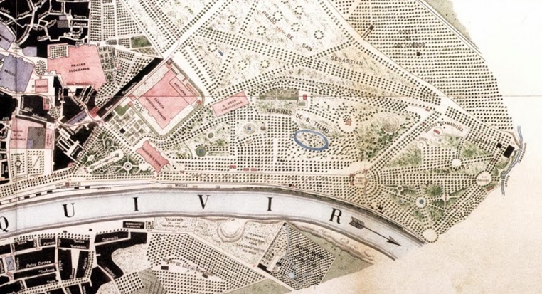 En los planos históricos de Sevilla puede observarse la magnitud del jardín y las huertas que lo componían que posteriormente fueron cedidas a la ciudad.