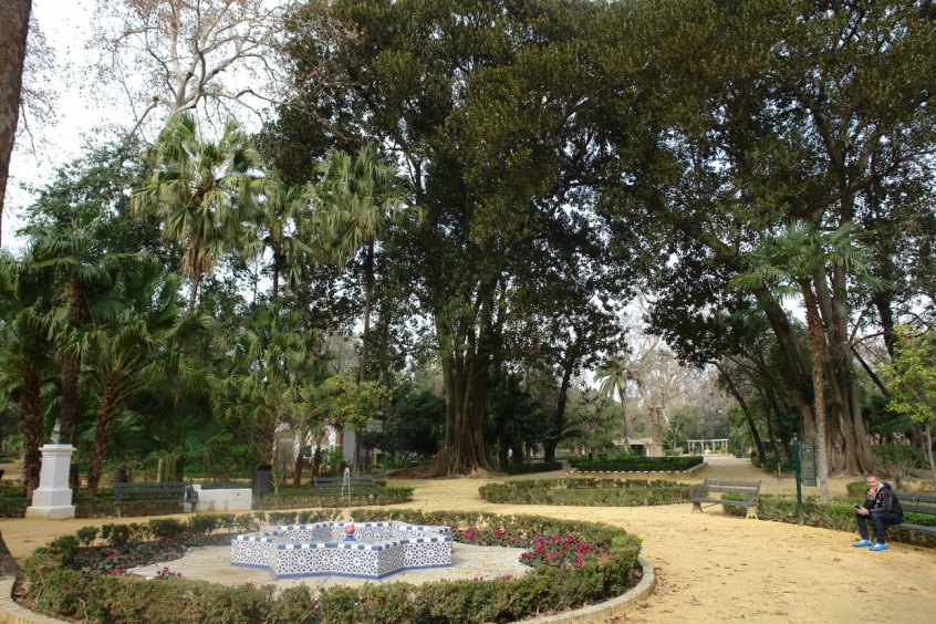 El resto del Parque lo configura en glorietas, alineaciones de árboles, arbustos de floración primaveral principalmente, naranjos, grandes eucaliptos, almeces, olmos, bosques de palmeras etc…