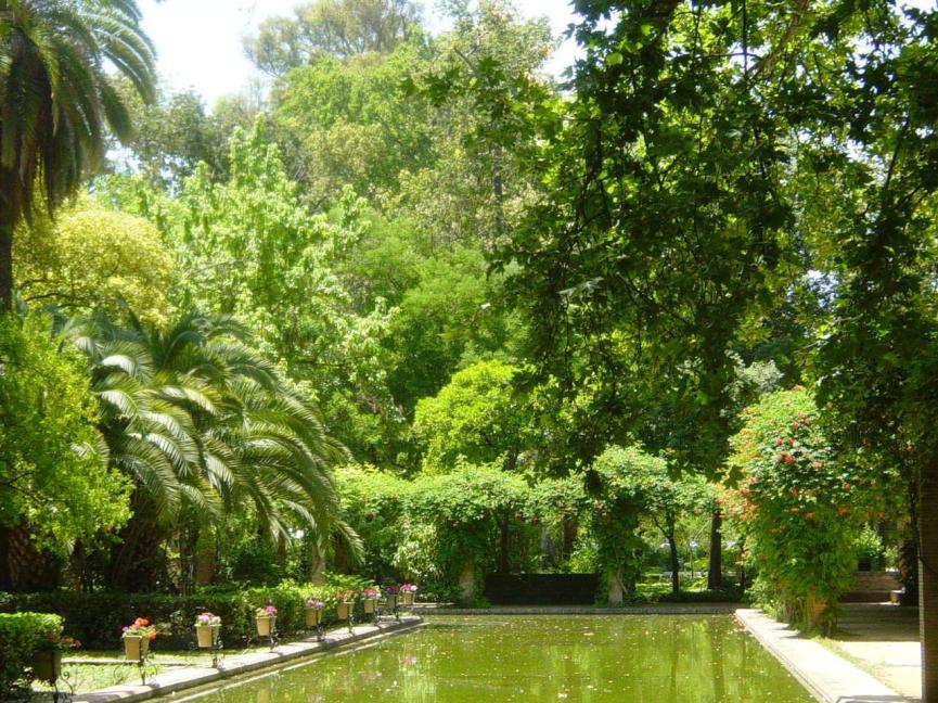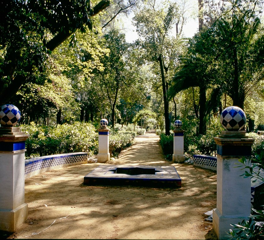 Se inspira en los jardines de la Alhambra de Granada, el Alcázar de Sevilla, Aranjuez y el Retiro de Madrid, así como jardines privados de Sevilla y Madrid.