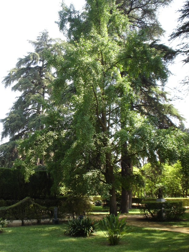 UBICACIÓN.- Nos los encontramos en los Jardines de los Reales Alcázares a la sombra de la frondosidad de otros árboles que le sirven de protección en el Jardín Ingles, los más antiguos de Sevilla que yo conozca. Se plantaron en el callejón Ntra. Sra. de La O junto a la orilla de la dársena del Guadalquivir plantados en 1968,uno todavía existe. Últimamente se han incorporado al Parque de María Luisa junto a la Pérgola delos Leones. Se quiere utilizar como árbol de alineación en calle en la calle Américo Vespucio y Paseo Rey Juan Carlos I. Mi experiencia es que los sembramos, nacieron, durante quince años estuvieron vivos sin desarrollarse, hasta que los mandamos a Cataluña al pie del Montseny hartos de no verlos crecer y allí en dos años alcanzaron alturas de tres metros.