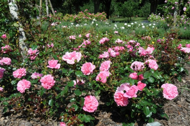 En una superficie de alrededor de 10 000 m², dividida en dos por una carretera de asfalto, hay cerca de 1.100 tipos de rosales . En uno de los sectores se agrupan las variedades que trazan la evolución de la rosa desde los tiempos antiguos hasta nuestros días, divididos en «Wild Roses», «rosas antiguas» y «rosas modernas».