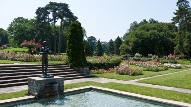 El jardín de rosas (La Roseraie) en el Parc de la Grange de Ginebra es un destino popular para los aficionados de los jardines europeos formales. Los visitantes también pueden disfrutar de muchas esculturas preciosas en el jardín.
