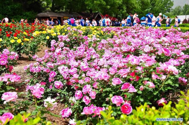 Shougang Rose Garden es la rosaleda más grande de Beijing. Se jacta de tener más de 300 variedades de rosas de China y más de 100.000 rosales… Durante el período de mayo a noviembre de cada año, una nube de floración roja y púrpura cubre el parque, dando fragancia intoxicaste a los numerosos visitantes.