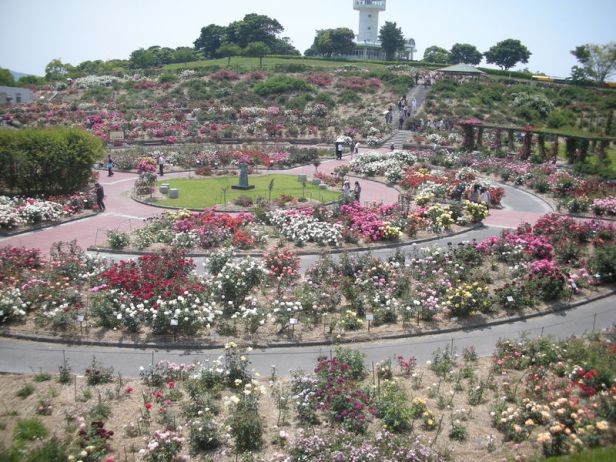 Alberga a unos 10,000 pies de unas 250 especies de Rosas de todo el mundo. El parque fue diseñado en el estilo del sur de Europa, con rosas de renombre mundial tal como las variedades conseguidas en la rosaleda de Itami tal como “Amatsu Otome” y “Madam Violet”.. El diseño del parque del jardín botánico se hizo con la construcción de la primera exposición de rosas, en forma de anfiteatro, con un desnivel de los laterales con respecto a la parte central con una diferencia de 10 metros de altura, tomando en parte de la orilla del río dios en el oeste. La creación de la dinámica del paisaje en terreno plano ha tenido un gran éxito.