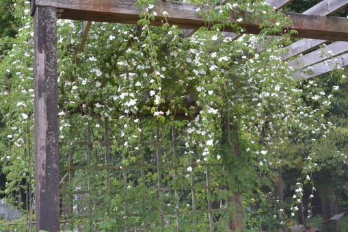Las rosas criadas por Seizo Suzuki se plantan cerca de la entrada del jardín. El arco blanco en este jardín fue entregado al Sr. Maebara por el Sr. Suzuki, cuando cerró su primer vivero de rosas, Todoroki-baraen.