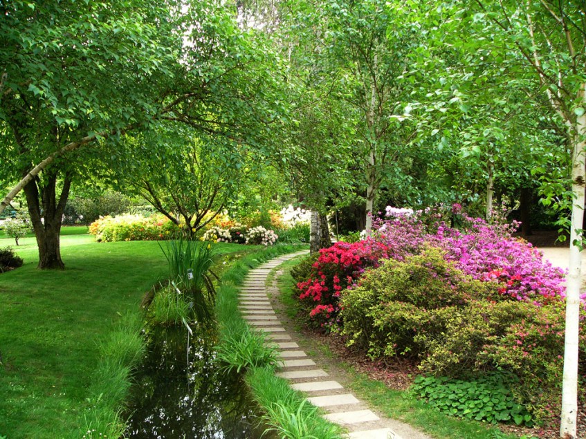 A finales de primavera y verano, el jardín de agua evoca una rica diadema que combina topacio, rubí y lapislázuli con los verdes de malaquita y jade. Lotus, nenúfares, Victoria regia son manifestaciones puras de la belleza, como fragilidad.