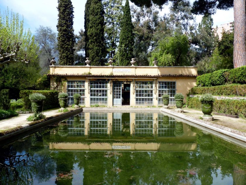 Rodeado de plantas con formas, colores y fragancias excepcionales, agaves gigantes, Syagrus romanzoffiana, cordylines verdes y rojos, daturas, Beaumontia grandiflora, buganvillas rojas, Citrus, kumquats, Thunbergia grandiflora azul, Caryota urens, la villa en su entorno vegetal como uno de los últimos testigos de las grandes horas de Mentón y debe permanecer sobre todo un lugar de esplendor. Detrás de la casa, el olivar residual, tiende a tomar cada vez más color mediterráneo con la introducción de plantas de California, Chile y Australia que no excluye la Trithrinax camprestris de la Pampa ni el Ficus religiosa de la India. El «mexicano» deriva su originalidad del partido que se ha elegido para favorecer las plantas caracterizadas por un estípite o un tallo largo y terminado por un manojo de hojas. Este es el caso de Araceae, Araliaceae, Liliaceae y Cycadaceae.