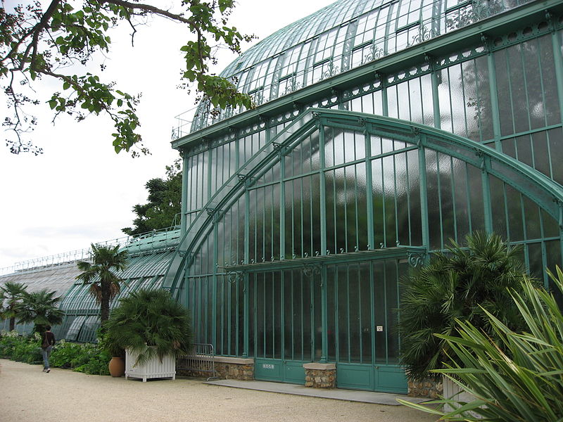 El invernadero mexicano, obra de Rohault de Fleury (1834–1836), precursor de la arquitectura metálica en Francia. Aquí se reagrupan las especies características de los medios áridos de las Américas, África meridional y Madagascar: cactus, euphorbias, Agave y también aguacates, cafetos o papayas.