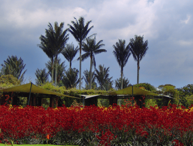Colecciones de árboles, arbustos, plantas ornamentales y frutales tropicales con más de 600 especies de plantas dispuestas entre cascadas, estanques, arroyo, agrupadas como: