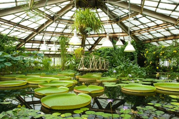 Se incluía el jardín de invierno (106 metros cuadrados), la sección de las plantas suculentas, sección de plantas subtropicales (126 metros cuadrados), la sección de plantas tropicales (126 metros cuadrados) y la sección para el cultivo de planta de interior.