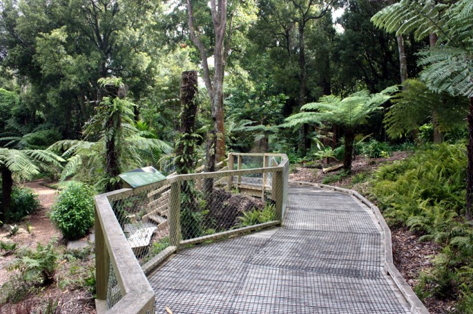 Te Marae o Tane. 18 metros sobre el suelo del bosque, que une las dos zonas de jardín principal. Accesible silla de ruedas. 5 minutos.