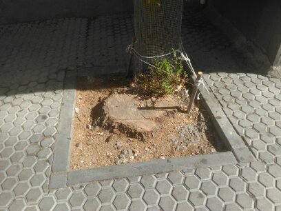 Hay tipos de alcorques que estéticamente están muy bien definidos. Otros, como el de la foto principal, es simplemente un recorte en el pavimento urbano, que como se puede comprobar, termina con la rotura de las losas y supone un peligro de caída para muchas personas.