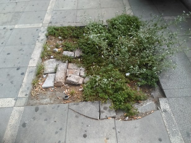Aplicar la apariencia de la hierba plantea la pregunta opuesta: ¿por qué no estaban antes allí? El desarrollo de las aceras no impidió la presencia de vegetación, que se extendió no solo al pie de los árboles, sino también en las juntas de dilatación del pavimento. En la misma lógica, el paisajista Gilles Clement, en una entrevista transmitida, enfatiza que la cesación de las prácticas es suficiente para alentar la naturaleza en la ciudad. Las recomendaciones sobre el mantenimiento del árbol de alineación prevista, tratan sobre la plantación del árbol, la poda, el cuidado de las heridas y el mantenimiento de los alcorques.