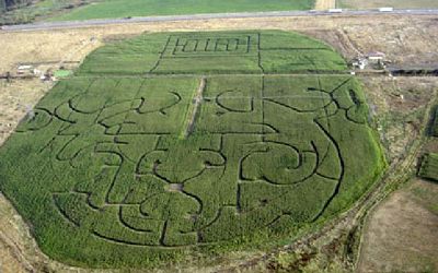 Este laberinto es tan díficil que tiene dos guías dando vueltas por el lugar para ayudar a encontrar el camino a los turistas perdidos. Está creado en un campo de maíz y sus caminos tienen una longitud total de 3,2 kilómetros.