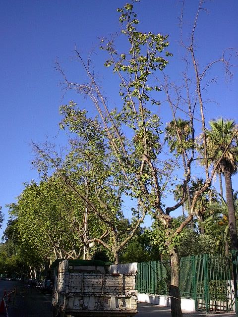 Sevilla.- Caida de ramas                                                                                                                          Platanos x hispanica calle Palos de la Frontera