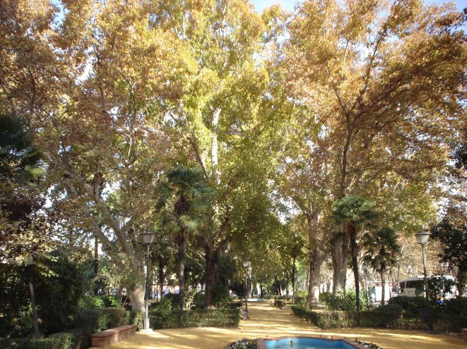 Sevilla.-Platanos antigupos en Jardines de Cristina