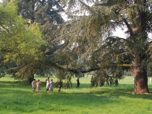 Arboretum de Chèvreloup.-Cedrus atlantica Grupo de visitantes