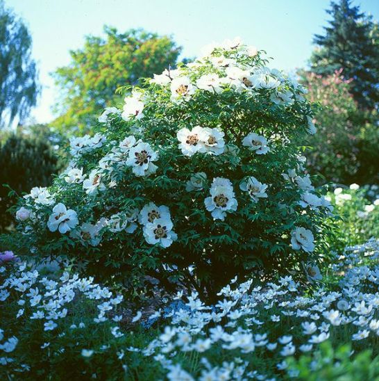 Estos son los de América Lútea- híbridos y natural de las especies silvestres de China Paeonia rockii (SGHaw et LALauener) T. Hong y JJ Li y sus híbridos en el punto de mira. De acuerdo con Sichtungsergebnissen anterior son alrededor de 2.500 piezas 25 años de edad ejemplares de Paeonia rockiien el jardín de exposición. Esta especie salvaje vigorosa de más de dos metros de altura es mucho más valioso que el jardín veces extremadamente discapacitados Suffruticosa – híbridos de China, Japón y Francia.