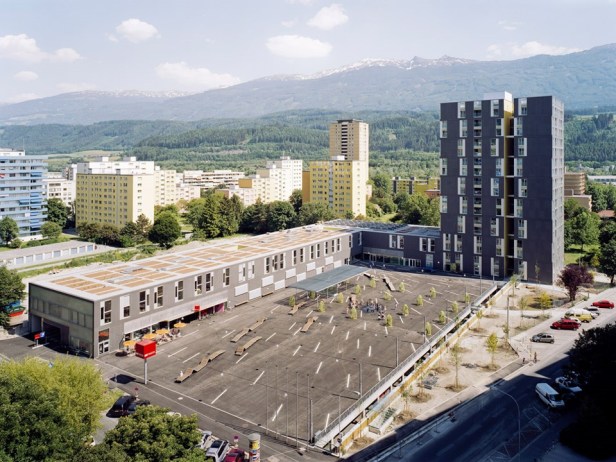 La plaza pública recuerda a una alfombra jugable, formando el nuevo centro de los barrios y convirtiéndose en un escenario de las actividades cotidianas de la vida y de la comunidad.