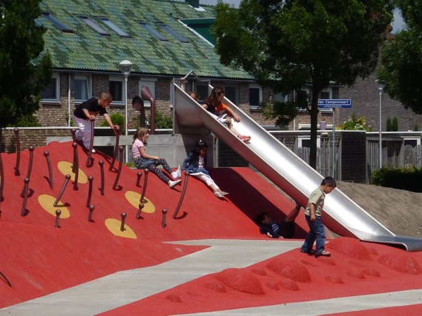 El ‘Van Campenvaart’ Zona de juegos es un campo de juego diseñado por el estudio de diseño tallar en la ciudad de La Haya, Países Bajos. Este proyecto público es un ejemplo excepcional de un centro de juego que ofrece la oportunidad de jugar a todos los niños independientemente de su capacidad. “Se trata de un parque infantil donde la diferencia de juego entre los niños con y sin discapacidad se elimina”, dijo el estudio de diseño Carve.
